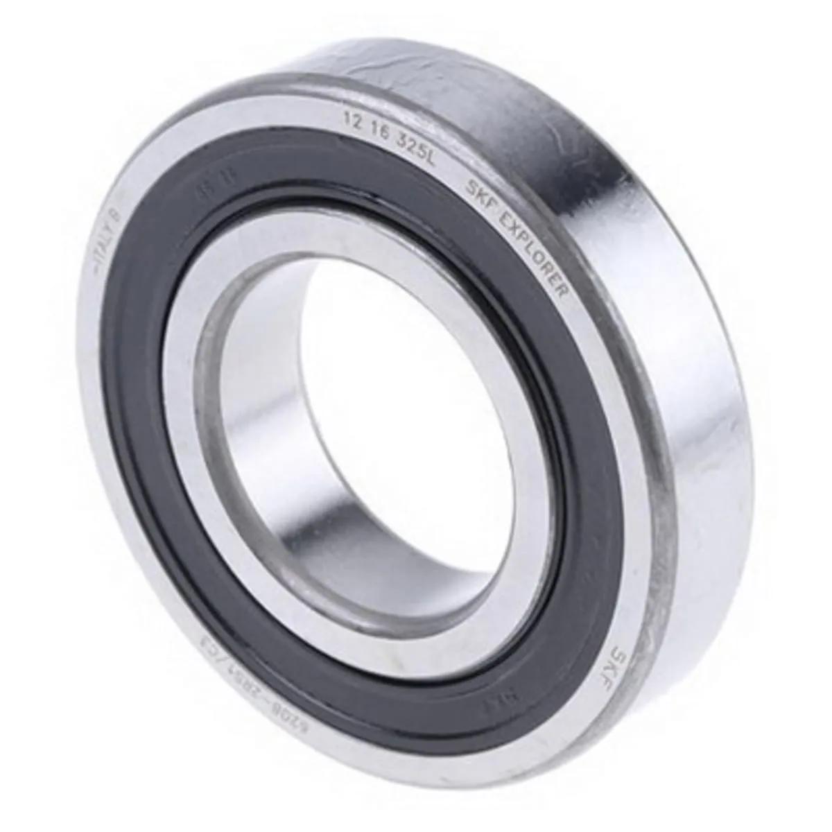 SKF 6200 single row deep groove ball bearings have deep, uninterrupted raceway grooves. These raceway grooves have a close osculation with the balls, enabling the bearings to accommodate radial loads and axial loads in both directions. Single row deep groove ball bearings are available open or capped (with seals or shields). Open bearings that are also available capped, may have recesses in the outer ring. - SKF 6200 single row deep groove radial ball bearings have deep, uninterrupted raceway grooves. These raceway grooves have a close osculation with the balls, enabling the bearings to accommodate radial loads and axial loads in both directions.