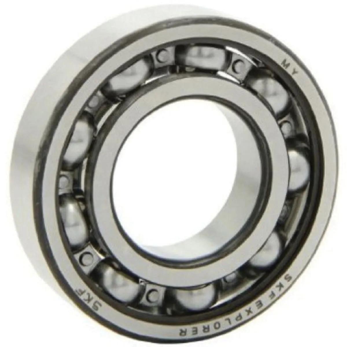 SKF 6200 single row deep groove ball bearings have deep, uninterrupted raceway grooves. These raceway grooves have a close osculation with the balls, enabling the bearings to accommodate radial loads and axial loads in both directions. Single row deep groove ball bearings are available open or capped (with seals or shields). Open bearings that are also available capped, may have recesses in the outer ring. - SKF 6200 single row deep groove radial ball bearings have deep, uninterrupted raceway grooves. These raceway grooves have a close osculation with the balls, enabling the bearings to accommodate radial loads and axial loads in both directions.