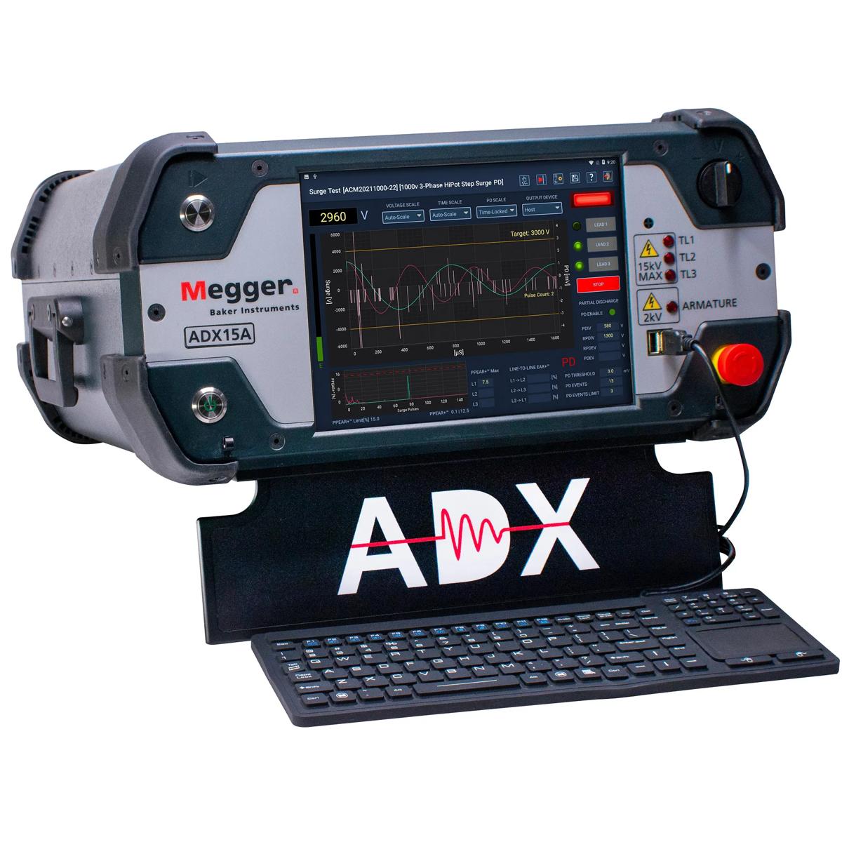 The ADX family includes models designed to perform tests up to 15 kV. The five main options include 4 kV, 6 kV, 12 kV, 15 kV, and 15 kV-A (Armature). These analyzers can be coupled with PPX to increase test voltages to 30 kV or 40 kV for tests on high voltage motors, coils, and generators.