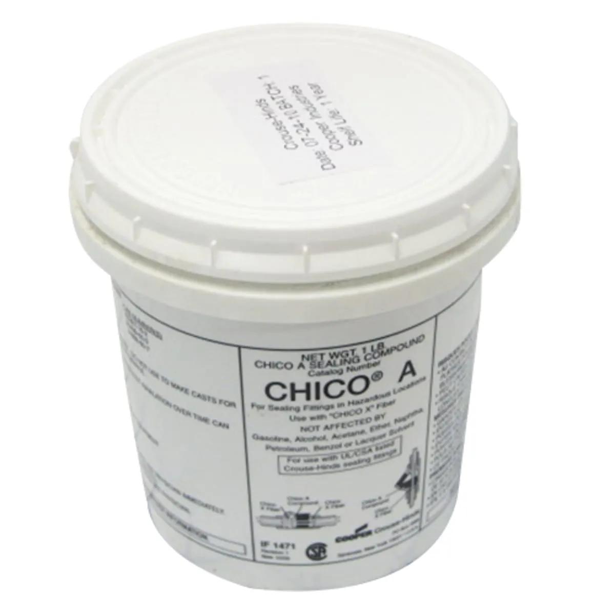 Introduced more than 75 years ago, this brand now consists of the traditional Chico® A sealing compound, the Chico® Intrapak, Chico® X Fiber, and Chico® SpeedSeal™ Compound. Sealing compounds form a seal around and between each electrical conductor inside a sealing fitting. - A water soluble powder that can be easily mixed and poured. Once hardened, the compound restricts the passage of gases, vapors, or flames through the conduit from one portion of an electrical installation to another portion.