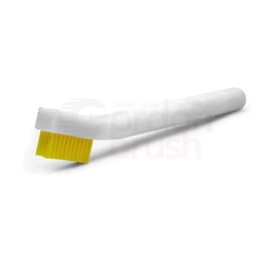 This brush has 0.016" stiff Static Dissipative Nylon Bristle with a Static Dissipative Acetal handle. The Nylon fill material is hand-laced with Nylon twine into its handle for maximum fiber retention. It can be used for cleaning or scrubbing applications in confined, static-sensitive areas. The handle is no more than 3/8" wide at the brush end.