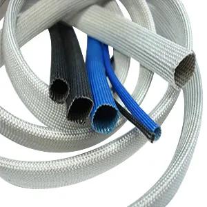 Nu-Flex HTS binds the fibers and provides excellent fray resistance avoiding skin irritation when cutting and handling. The color binder may degrade at operating temperatures above 200 °C. Its expandability and flexibility enables it to slip over irregular shapes and electrical connections to provide effective thermal, mechanical and electrical protection. - Nu-Flex HTS is a fiberglass braided sleeve that has been heat treated to remove all organic contaminants and then saturated with an acrylic binder. The acrylic binder can be dyed in many colors for code and identification purposes.
