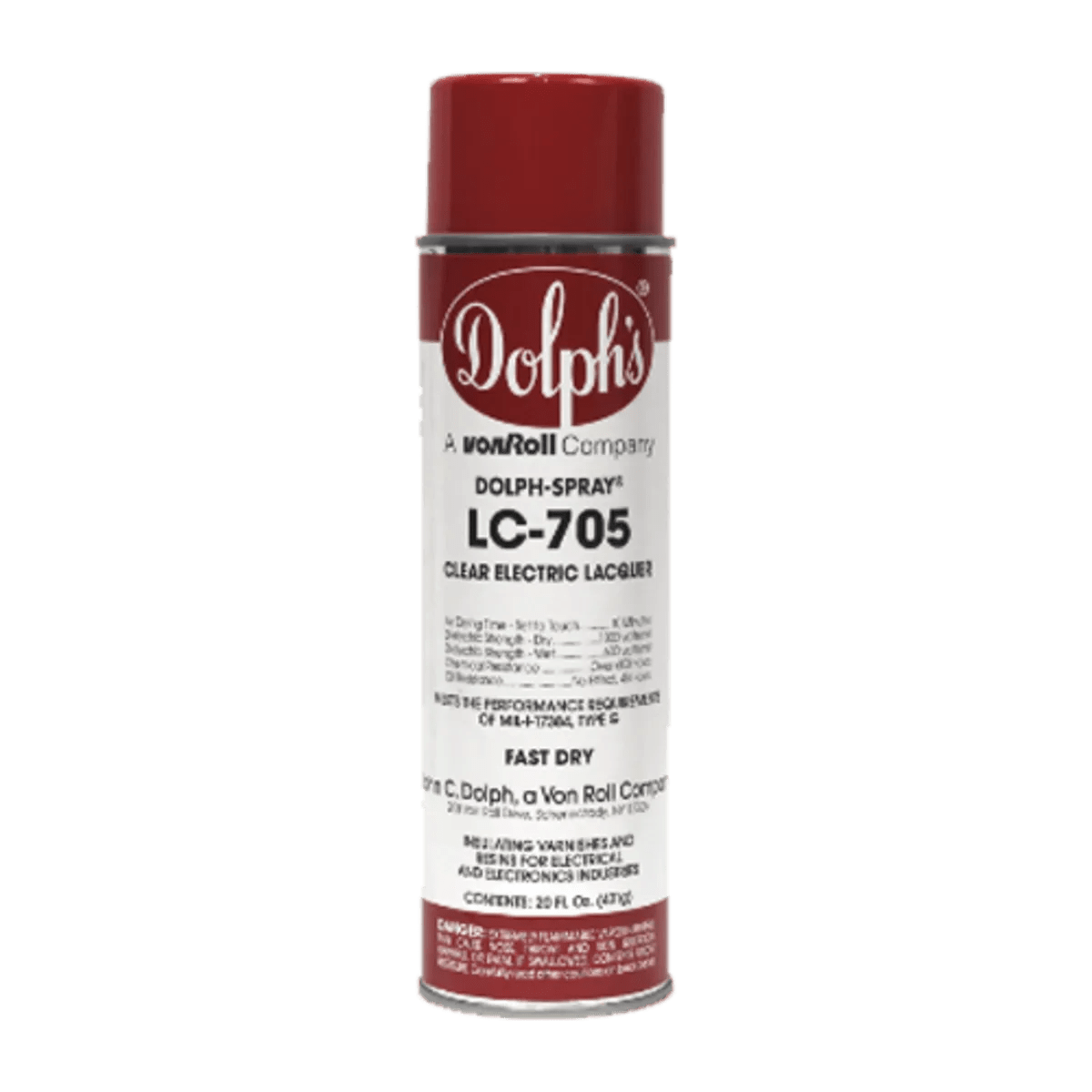 Von Roll/John C Dolph LC-705 Insulating Lacquer Varnish, 1500 V/Mil (Dry), 800 V/Mil (Wet) Dielectric Strength, 10 - 30 min Dry Time, 105 °C Temperature Rating. - Clear insulating lacquer is made of a cellulosic film forming compounded with selected plasticizers and solvents.