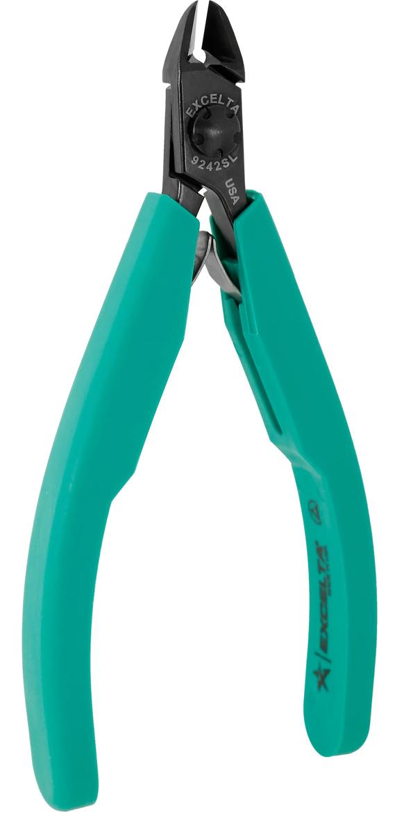 The Slim Line 9242SL Lazer Line® medium oval laser flush cutter has a cutting capacity of .001" - .032" soft wire. It is made of carbon tool steel with induction hardened cutting blades to RHC 63-65. The CNC machining allows the joint surfaces to be perfect to allow for long life. The dual leaf springs provide smooth action. It features molded ergonomic antimicrobial Anti-Static grips (10¹⁰ohms/sq surface resistivity).